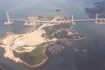 站在中部配水庫的小丘上,眼看一層層厚厚的黃泥將田野覆蓋、填高,亦不斷向中部的田寮村伸延;島上第二高北灣頂慘遭削平,連同面目全非的北灣,及曾經是考古場地的東灣仔,已成為無法踏足的遊人禁地;南面最高的大嶺頭,為了遷就由高架道路上所引下來的支路,北半部的山頭被狠狠的削掉;東灣泳灘,遊人零落,灣畔的設施大樓可有可無。